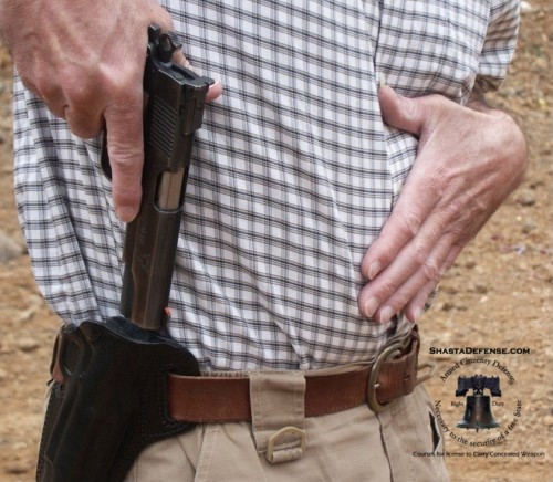 | Thumb is over hammer as you holster. |
