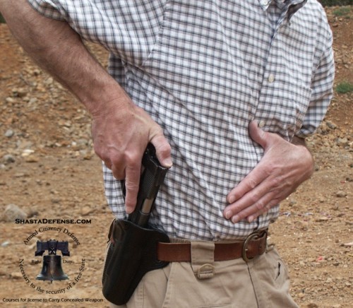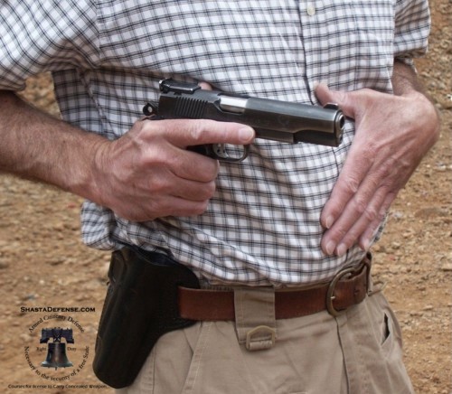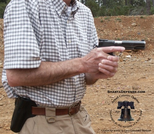 | Obtain full firing grip on gun. High hand