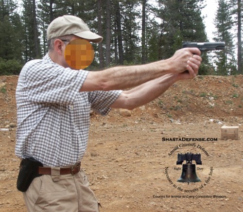 | Gun is at eye level. |